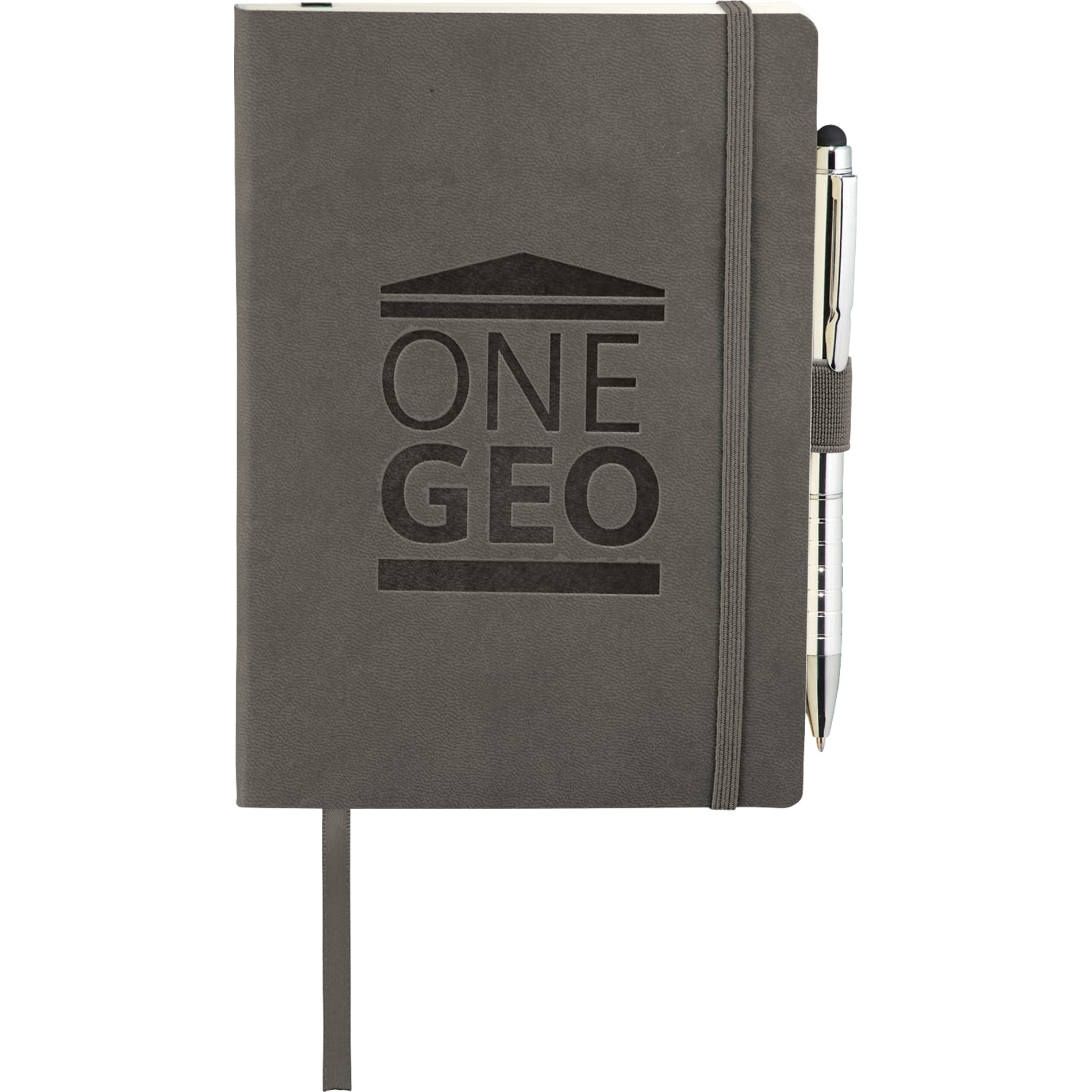 Flexible, soft cover with built in elastic closure. Ribbon page marker.Pen loop. Document pocket on interior back cover. Includes 80 sheets of cream lined paper. Pen is not included.