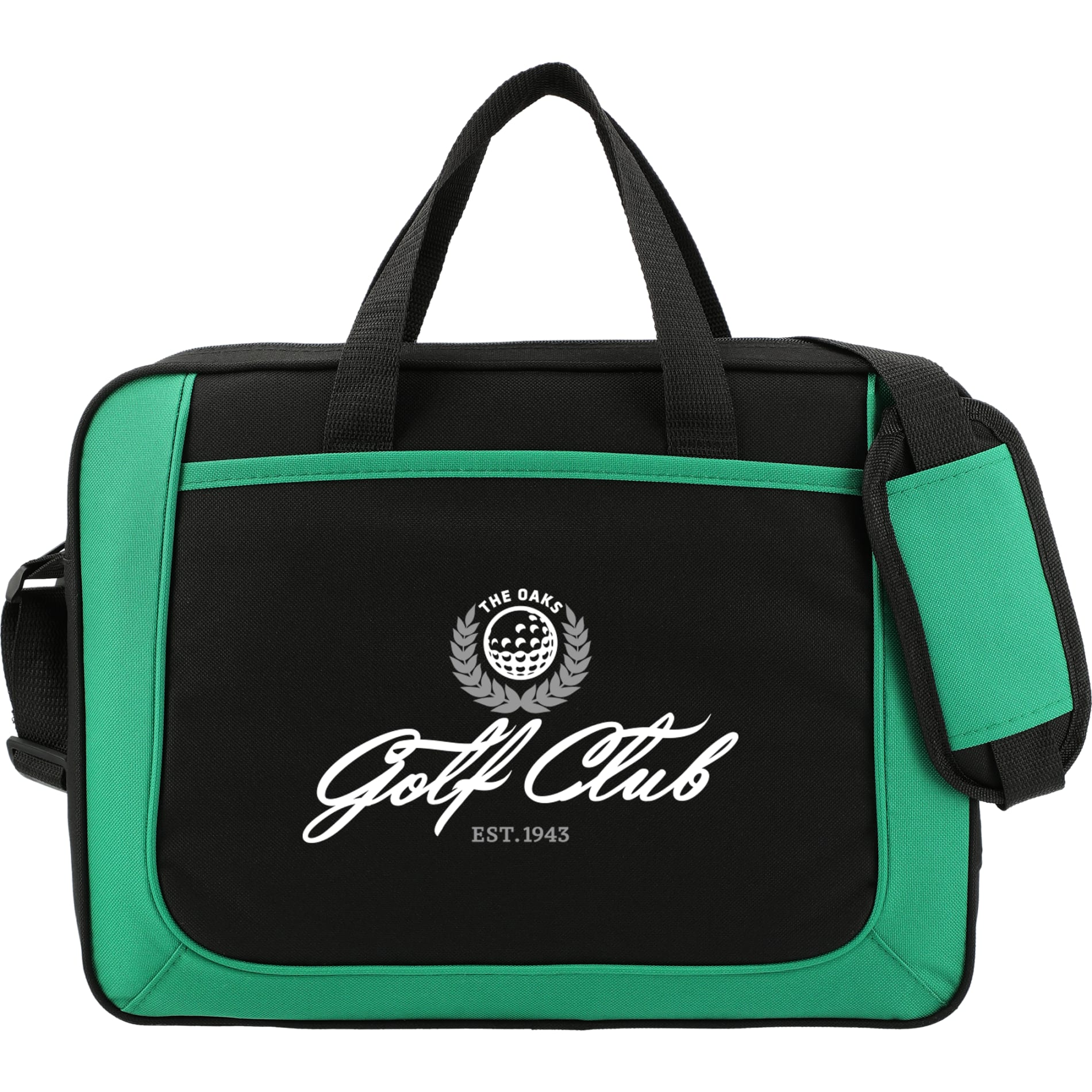 The Dolphin Business Briefcase Zippered main compartment comes with double 12-1/2 inch reinforced top carry handles. It also features an open front pocket and pen sleeves. An adjustable padded shoulder strap makes it convenient and comfortable to carry.