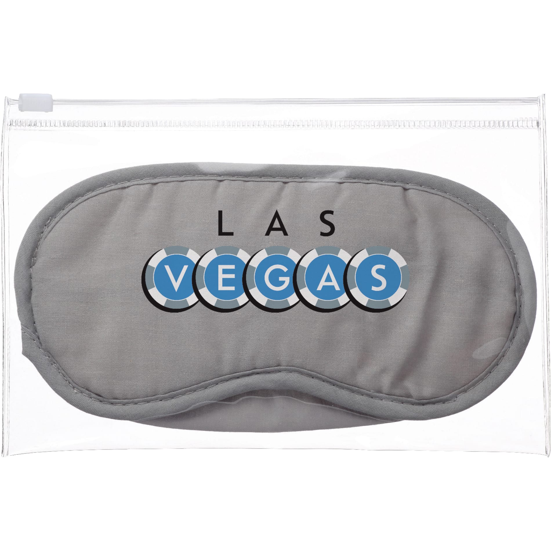The E-Z Comfort Set is an zip-top resealable pouch that includes a polyester eye mask and 2 foam earplugs. An imprint is available on the Pouch only. Pouch is packed separately.