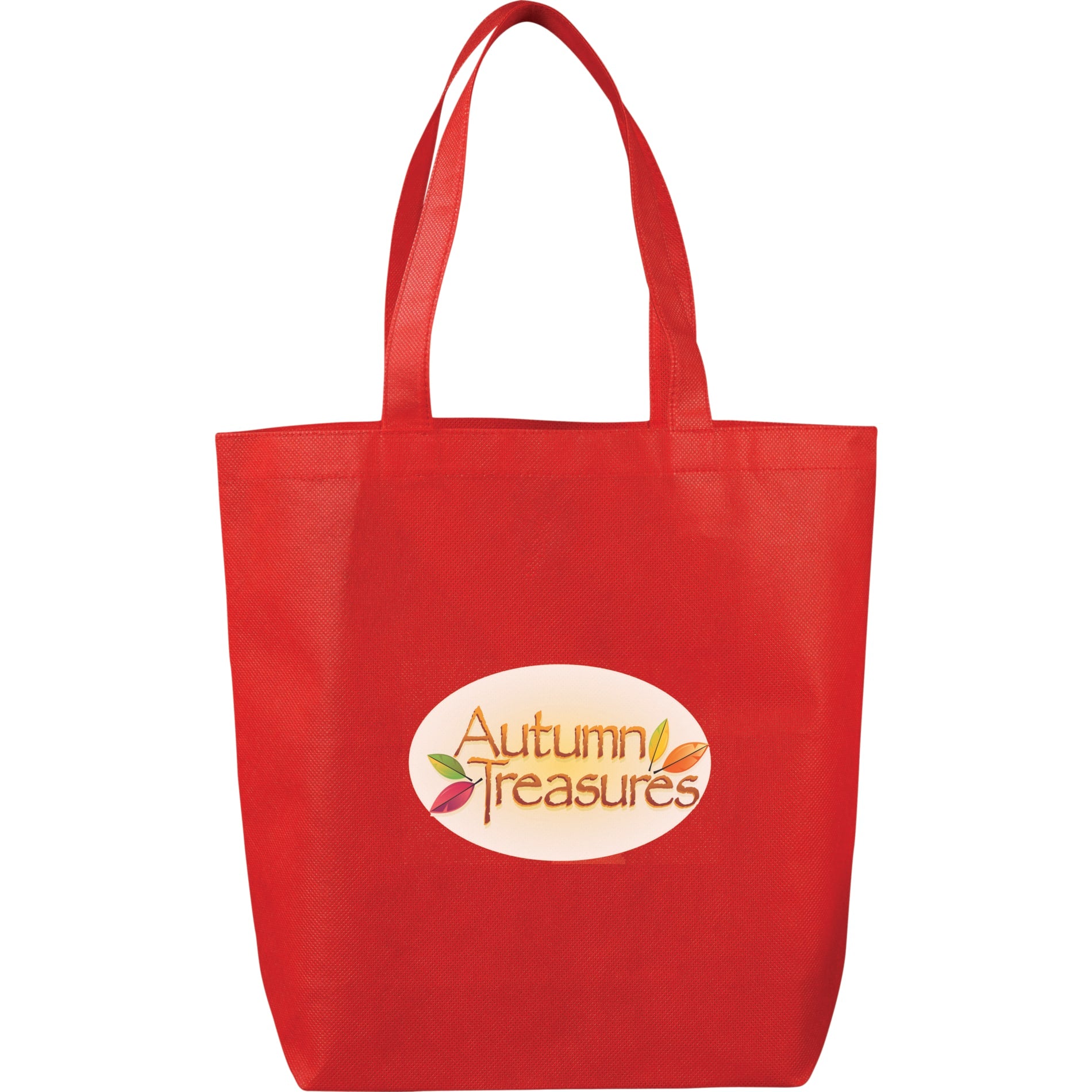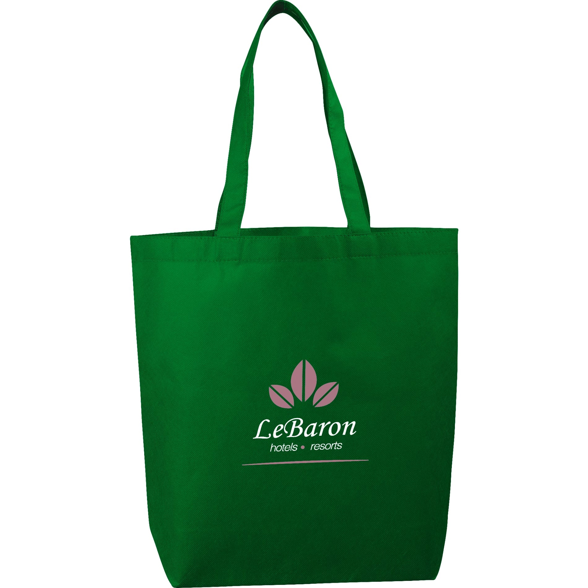 The Eros Non-Woven Tote has an open main compartment with double 20 inch handles. Its also reusable and a great alternative to plastic bags. Polypropylene is recyclable with #5 plastics please check with your local municipalities for specific rules and regulations.