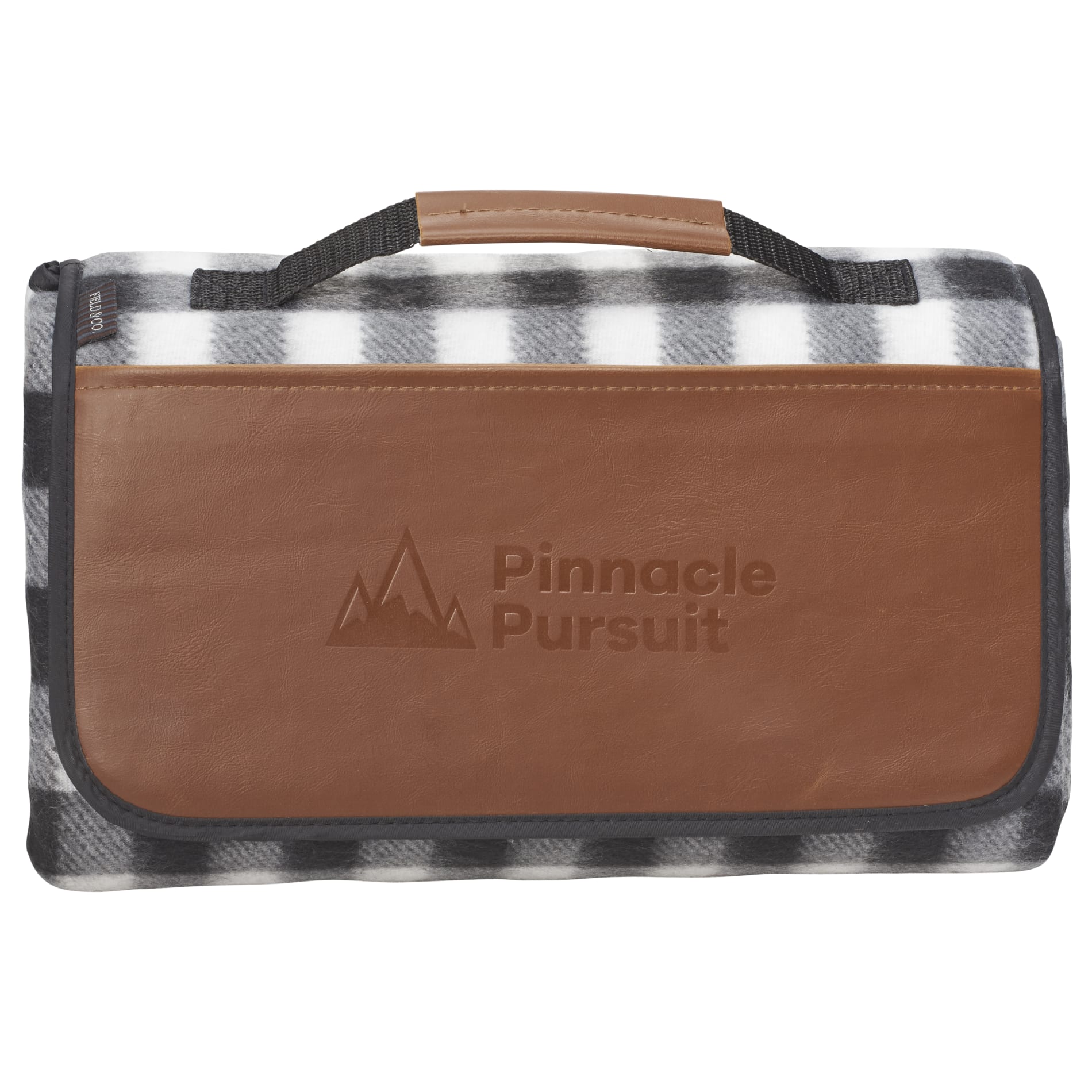 Make your picnic perfect with this Buffalo Plaid Field & Co. Picnic blanket. This blanket features comfortable polarfleece with foam padding and PEVA backing. The 10.5” x 4.5” pocket is perfect for storing mobile devices or any other picnic necessities. Blanket measures 47in x 53in unfolded and 7in x 12in folded. This blanket is spot clean only.
