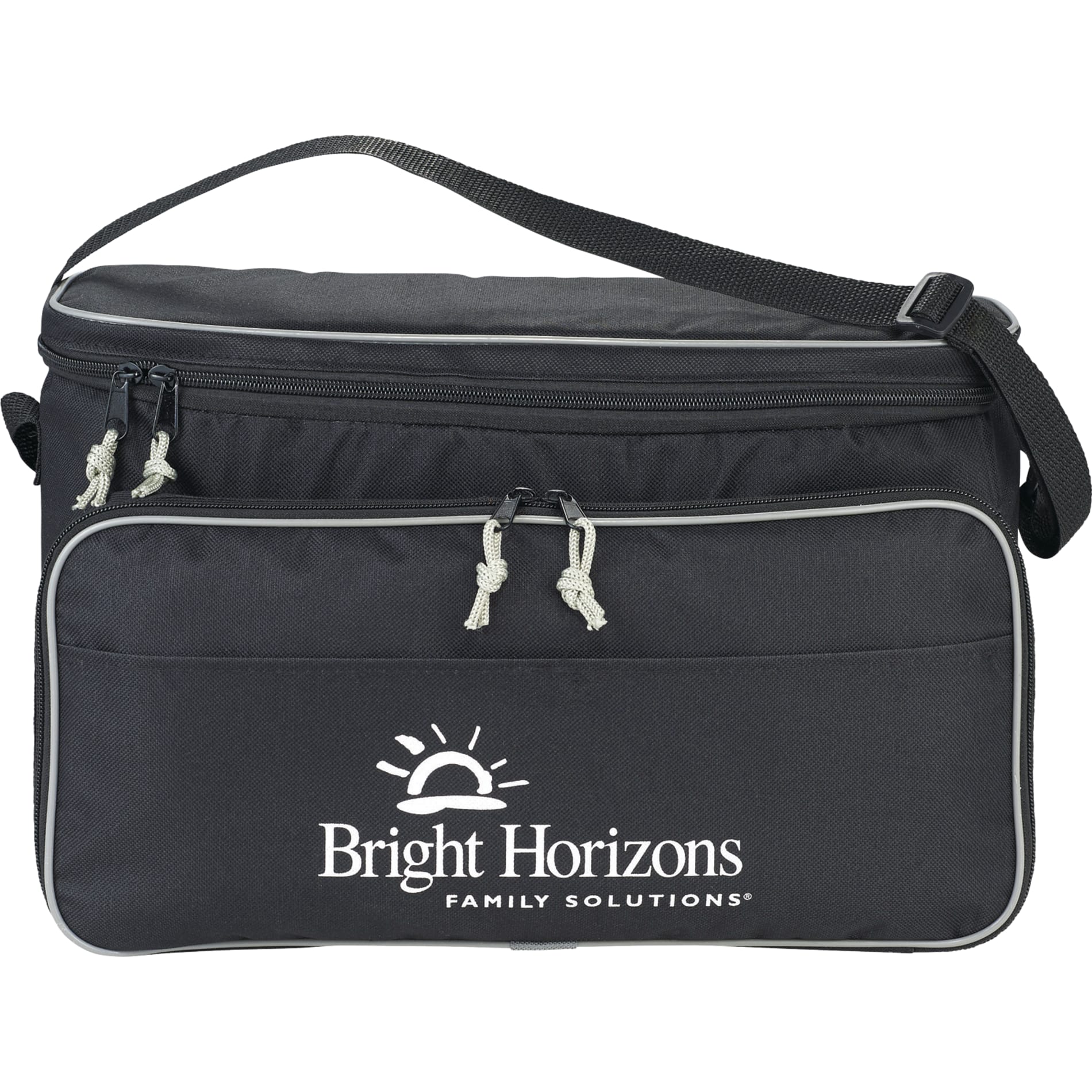 Grill and Chill set includes the essentials for a successful barbecue on the go. Metal tongs, BBQ fork and spatula are stored in a front zippered organizer pocket. Cooler bag includes a shoulder strap, insulated main compartment, and a front storage pocket. Insulated main compartment of cooler bag is perfect for transporting food to your next barbecue.