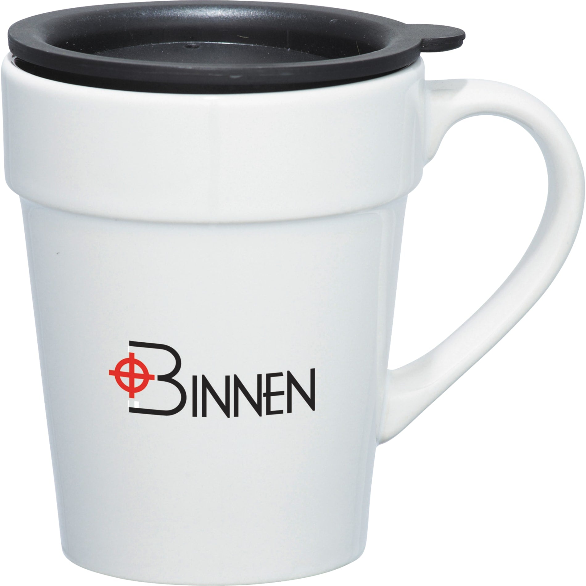 The Habanera 10oz Ceramic Mug is a tapered design mug with a white interior accent. It also includes a handy press-on plastic lid with a drink opening. See General Information page for special ceramic item handling charge. Hand wash only and follow any included care guidelines.