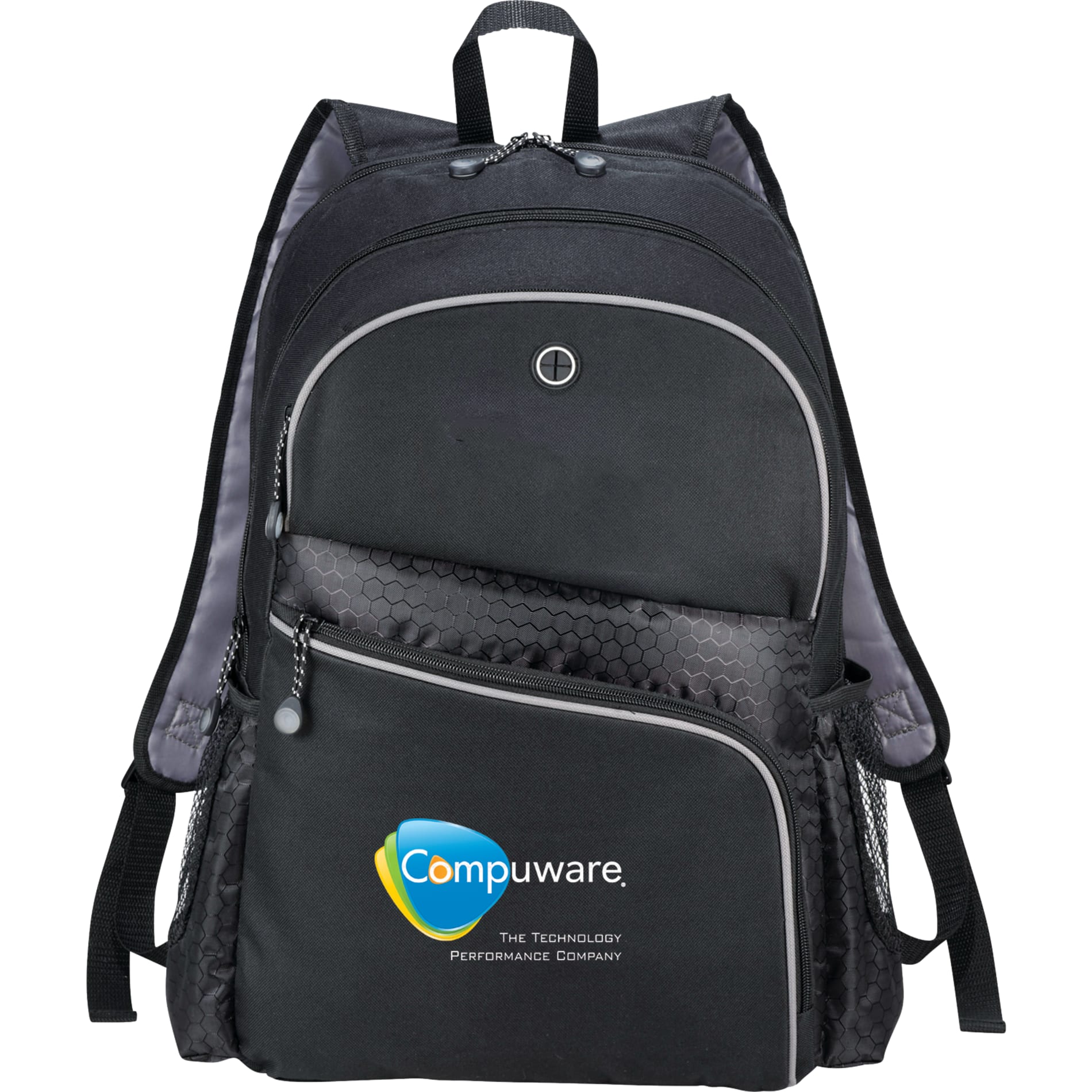 The Hive TSA 17in Computer Backpack is a checkpoint-friendly backpack holds most laptops up to 17 inches. Dedicated laptop compartment unzips flat to make it easier to go through airport security. Zippered main compartment includes padded compartment for your iPad or tablet and is spacious enough for your padfolio, books and folders. Bottom zippered pocket includes deluxe organizer for your pens and business cards while top zippered pocket can fit your iPhone cables and mobile charger. Two side mesh pockets for water bottles. Adjustable backpack straps and carry handle