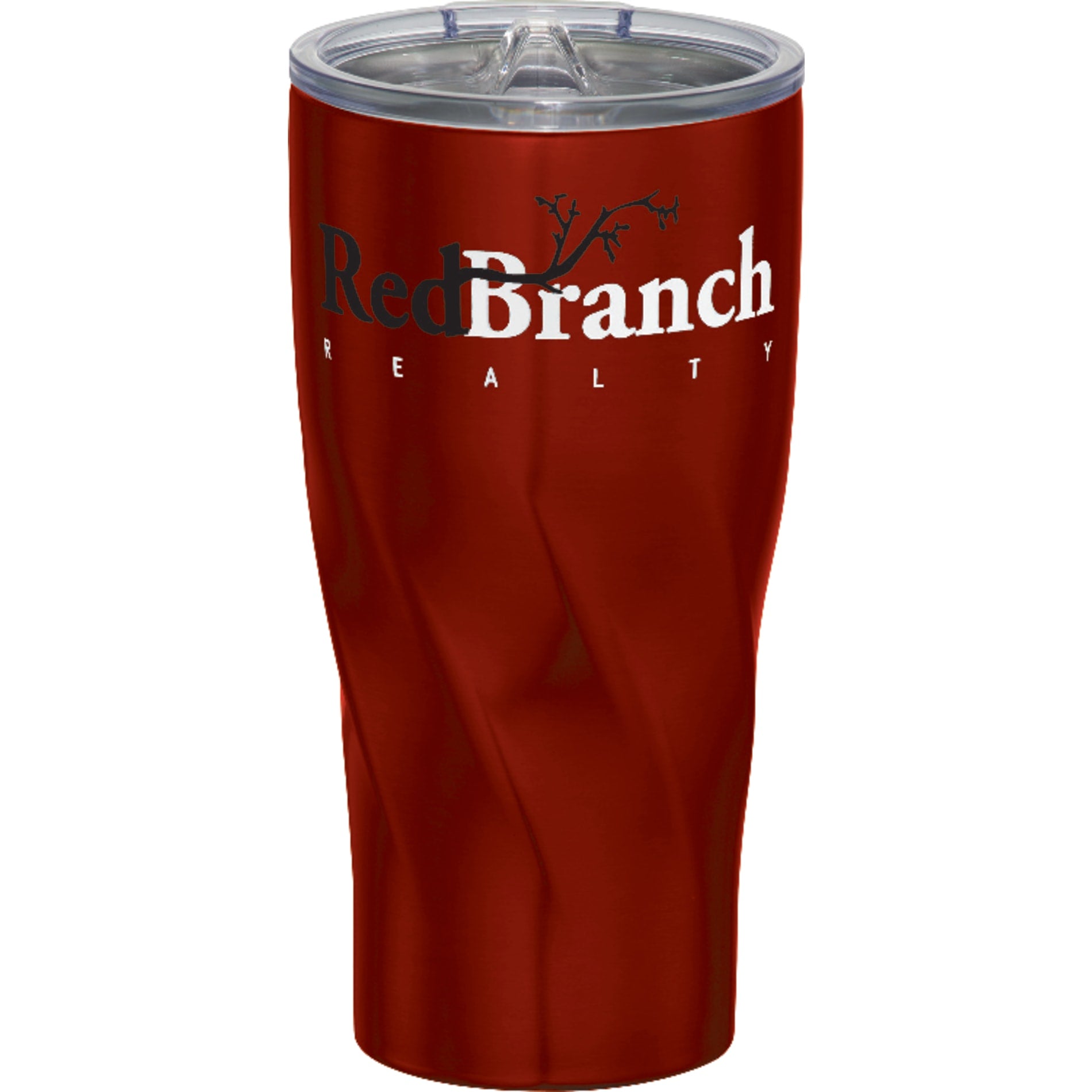 Do not miss the most trendy tumbler of the year. Durable, double-wall stainless steel vacuum construction with copper insulation, which allows your beverage to stay cold for 24 hours and at least 8 hours for hot beverages. The construction also prevents condensation on the outside of the tumbler. Push-on two piece lid with Tritan™ swivel closure, pinch the 2 axis joints slightly to remove the top part of the lid for easy cleaning. Wide opening for comfortable filling and pouring. Design features the spinning, geometric bottom. Leeds Exclusive. 20oz.
