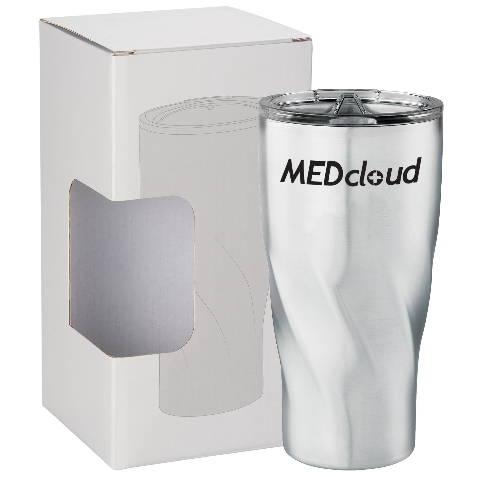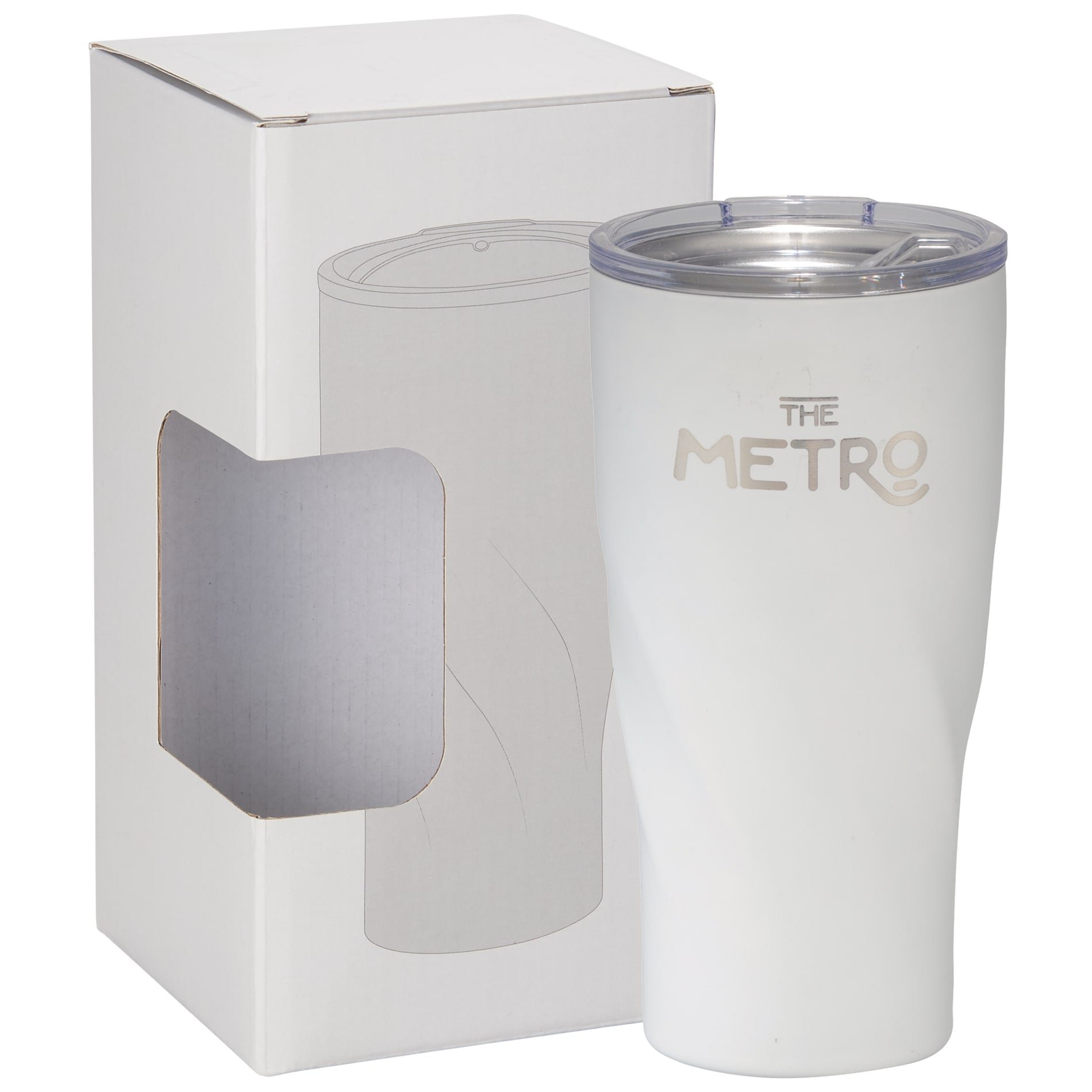 Do not miss the most trendy tumbler of the year. Durable, double-wall stainless steel vacuum construction with copper insulation, which allows your beverage to stay cold for 24 hours and at least 8 hours for hot beverages. The construction also prevents condensation on the outside of the tumbler. Push-on two piece lid with Tritan™ swivel closure, pinch the 2 axis joints slightly to remove the top part of the lid for easy cleaning. Wide opening for comfortable filling and pouring. Design features the spinning, geometric bottom. Leeds Exclusive. 20oz. Laser Plus tier 1 available on all colors. Drinkware is 1624-89. “For additional protection, all Drinkware pieces will be individually polybagged and inserted in the gift box.”