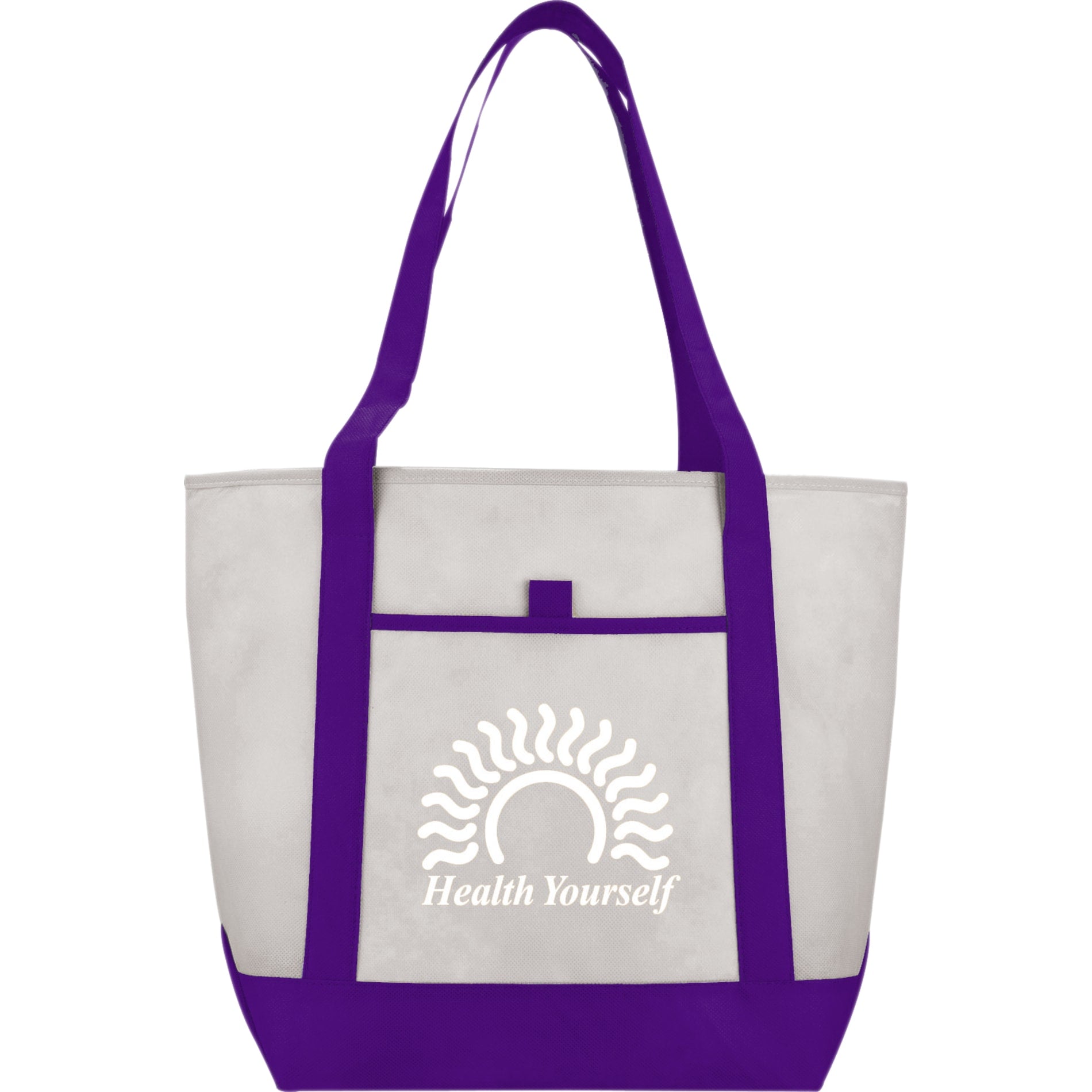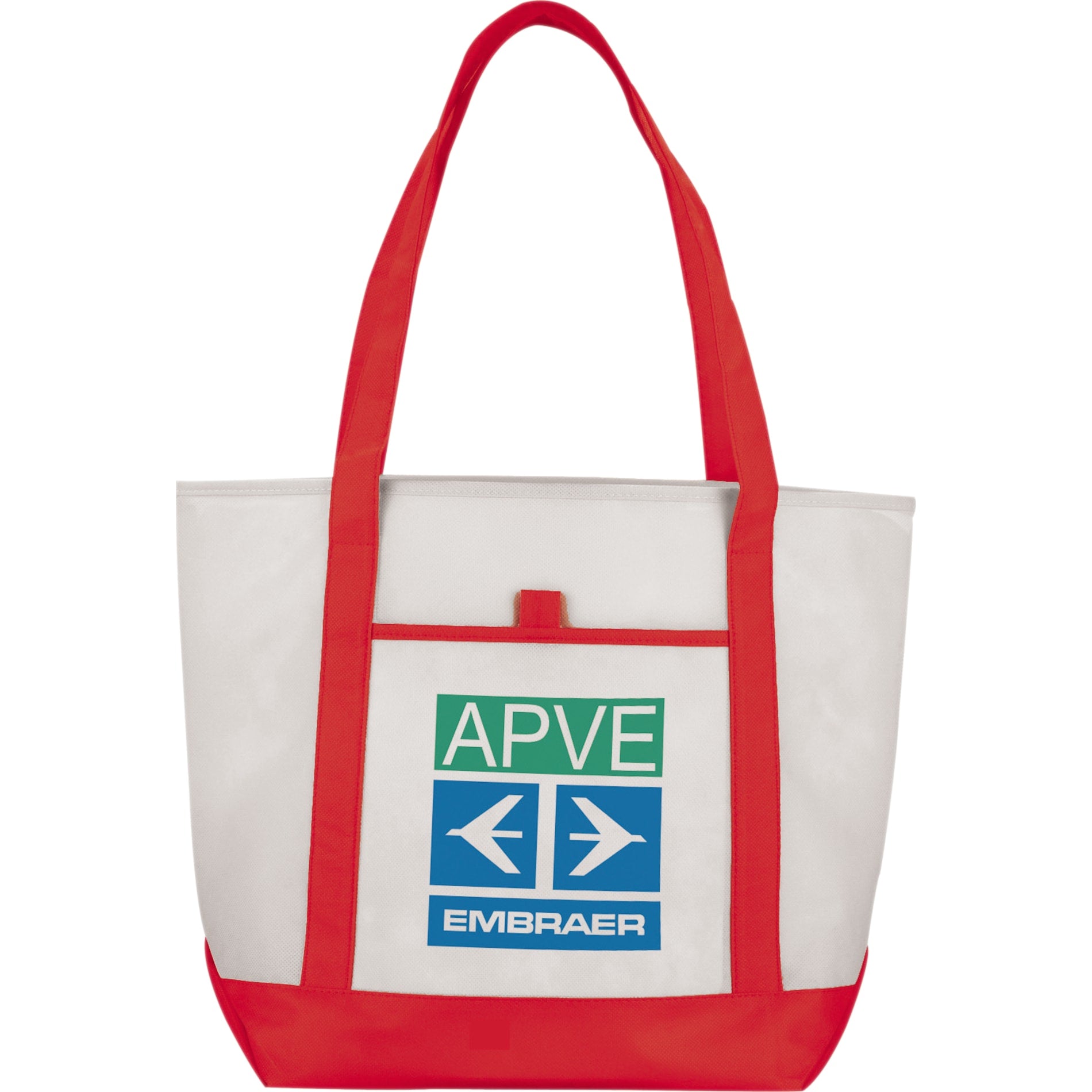 The Lighthouse Non-Woven Boat Tote features an open main compartment and a front pocket with a pen loop. Including double 24 inch handles its also reusable and a great alternative to plastic bags.
