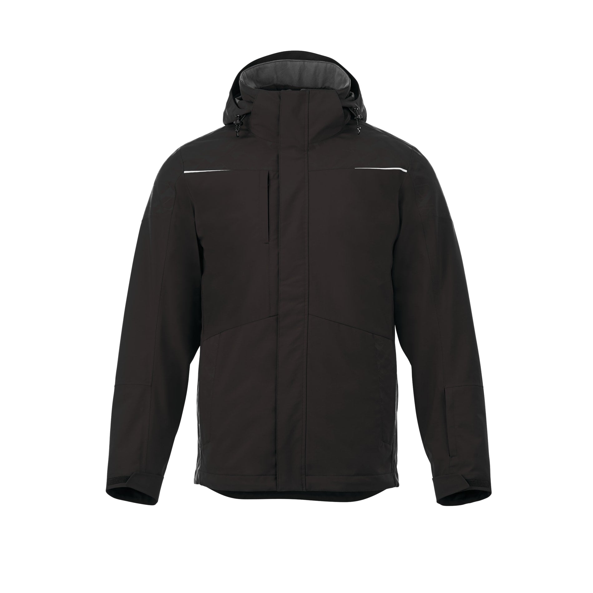 The Mens Yamaska 3-in-1 Jacket will keep you ready for any weather with a fully seam-sealed outer softshell jacket thats waterproof and breathable along with the removable insulated hybrid jacket liner that can be worn on its own or layered with the outer shell for extra warmth and protection. This high-performance jacket keeps comfort in mind, with extra collar padding for coziness, articulated elbows and ergonomic sleeves to help with movement and thumb exits to keep your hands free. Added features like easy grip zipper pulls, a detachable hood, elastic drawcords at the hem, interior media pocket and hidden pockets at the sleeve and interior make this jacket highly functional. The outer jacket has an on-trend graphic pattern and reflective elements.