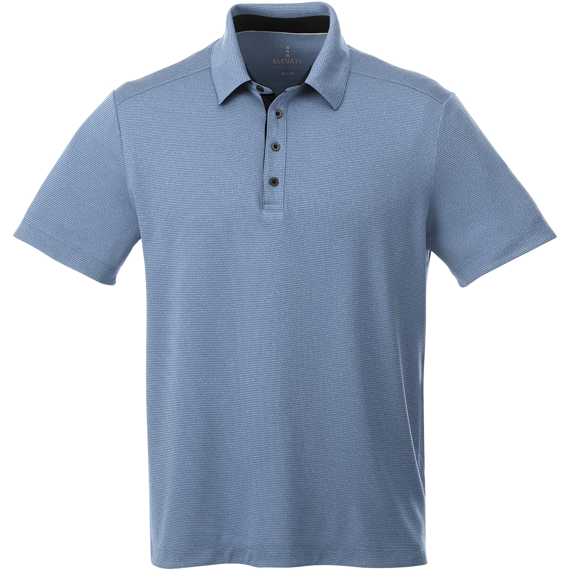 The Mens Skara Short Sleeve Polo features a modern fit and on-trend textured linearfabric built with inherent cooling properties. This high-tech polo is also durable with a snag-resistant finish and provides UV protection (UPF 40+).