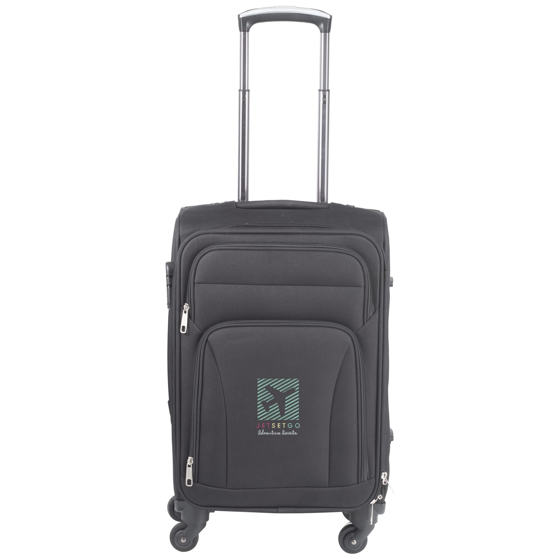 The lightweight 21in 4-wheel expandable upright case is made from lightweight and durable polyester fabric and features a sturdy design with a locking retractable handle system, smooth rolling wheels, and top and side grab handles for easy lifting. This piece has a fully lined interior that includes tie-down straps to hold garments in place and a zippered pocket to hold smaller items. Two exterior zipper pockets offer added storage for small items that you need to keep within easy reach.