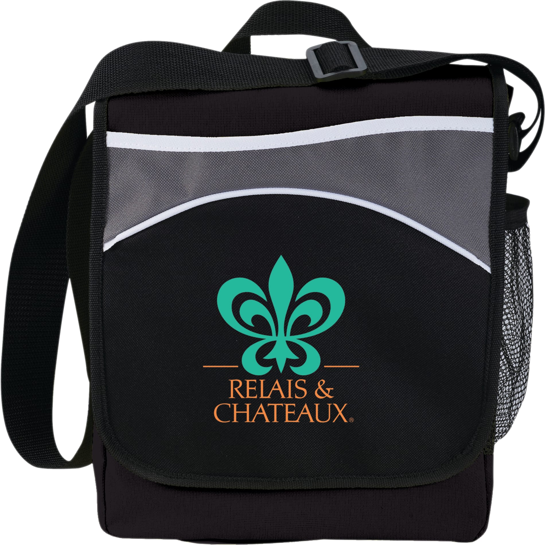 The Oasis Messenger Bag features a main compartment with a hook and loop flap closure and an open front pocket. Under the flap youll find a pen sleeves pocket, a zippered mesh pocket and a side mesh pocket. The adjustable shoulder strap and a top carry handle make it comfortable to carry.