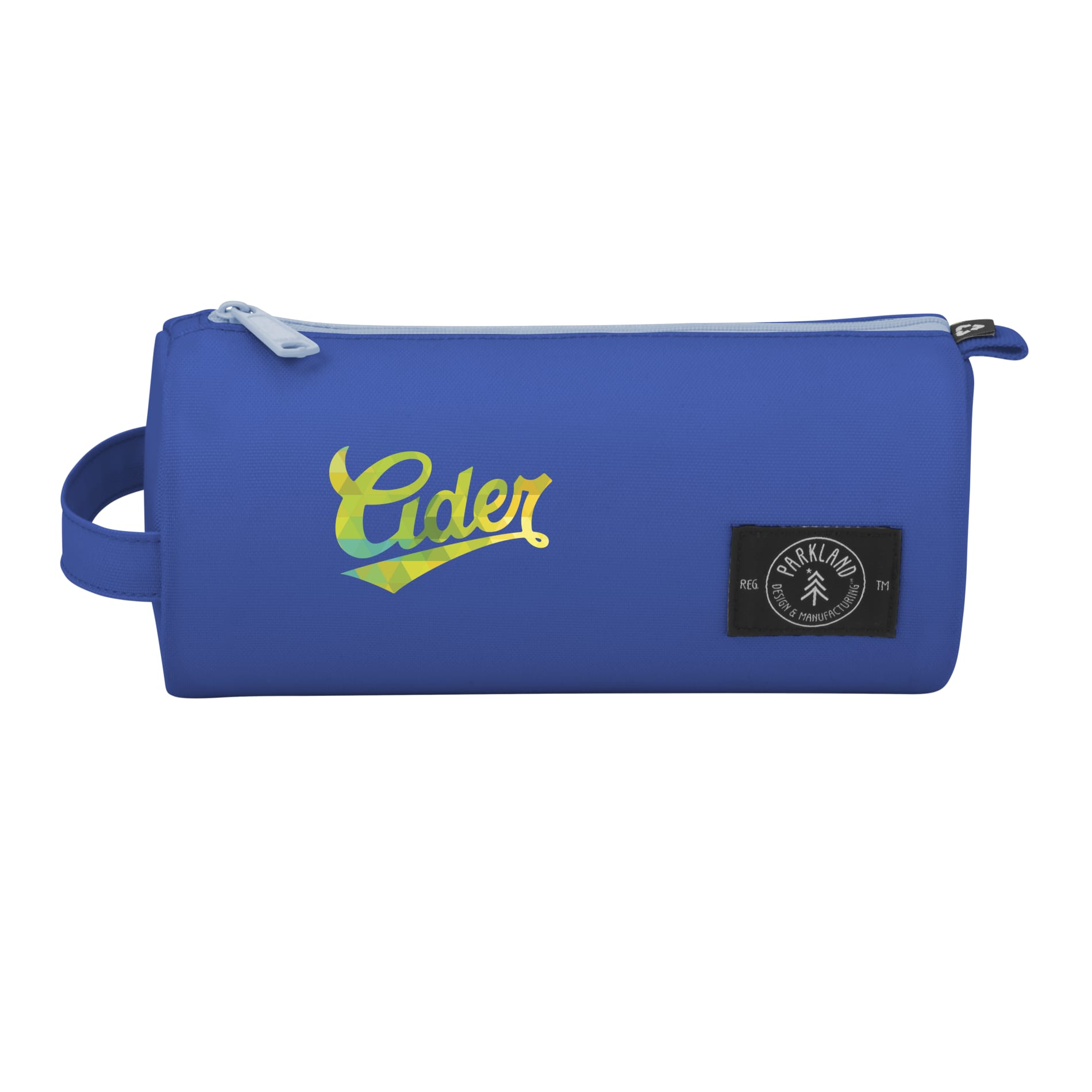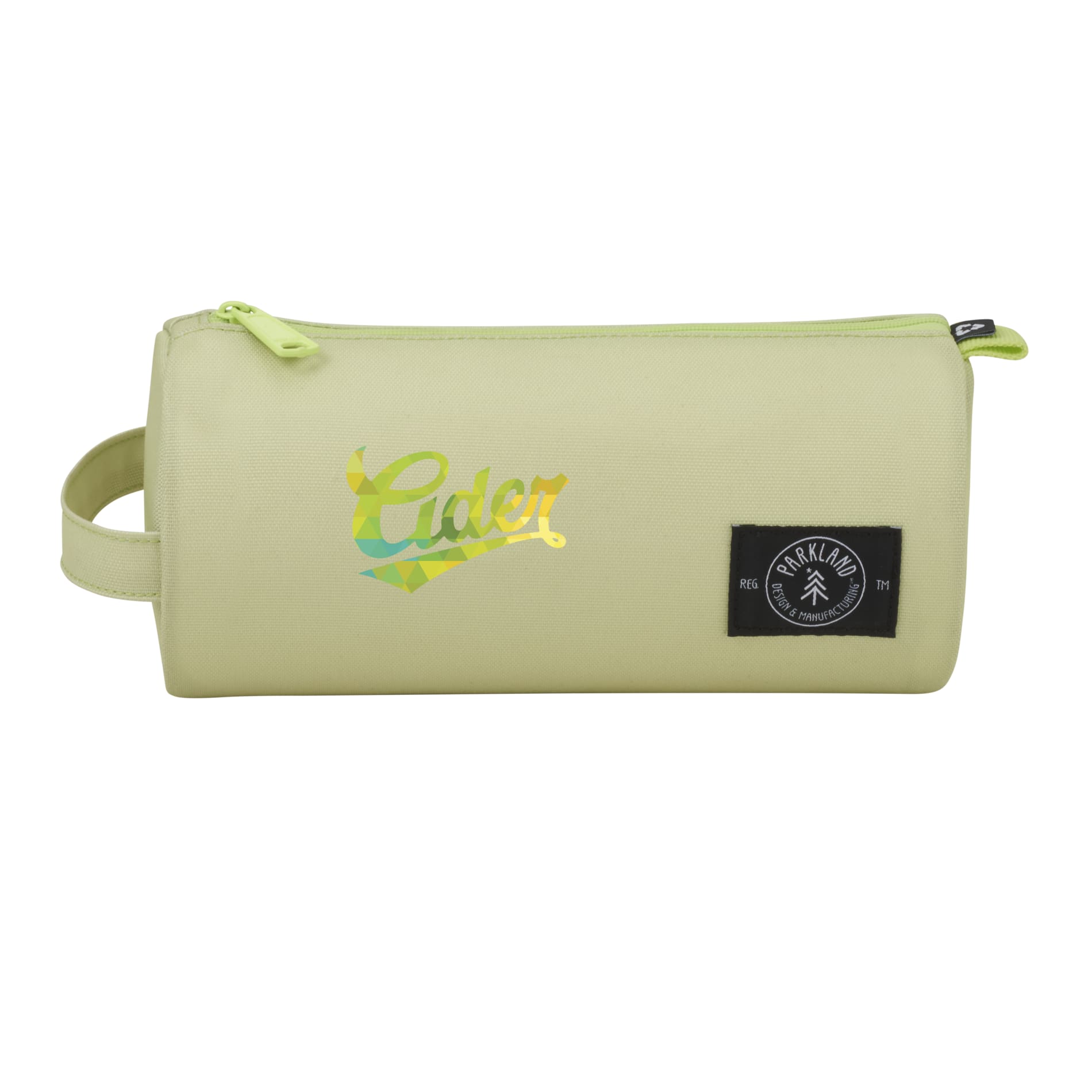 The exterior of Parkland bags is made with 100% recycled water bottles. The Parkland Highfield Large, a pouch designed with style and sustainability in mind. Its cylindrical shape is ideal for stashing everything from school supplies to chargers and earphones, and helps keep everything in your bag extra organized.Through a partnership with 1% For The Planet, one percent of sales of this and all EcoSmart products will be donated to nonprofits dedicated to protecting the planet.