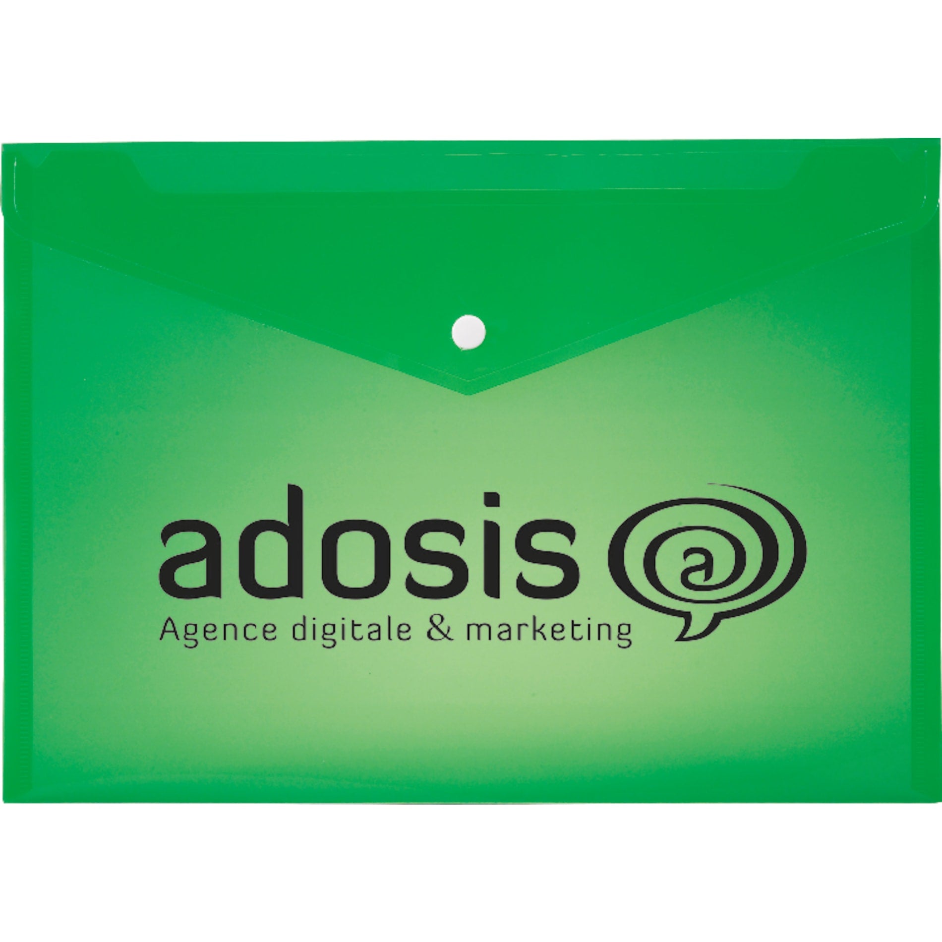 The Protect-E-Lope is a document folder that fits 8.5” x 11in sheets of paper with a secure snap closure.
