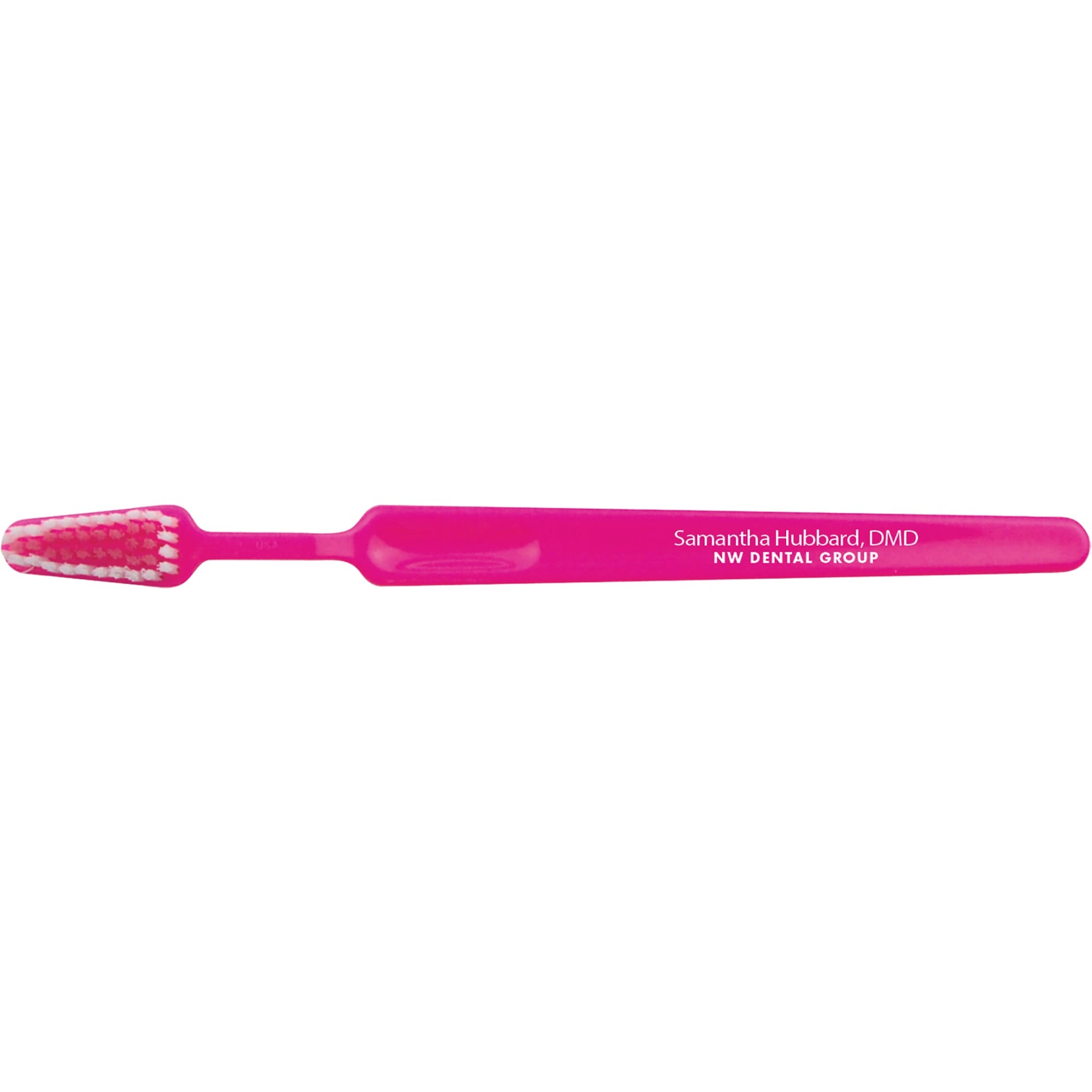The Signature Soft Toothbrush is a high-quality, adult-sized toothbrush with soft bristles, plus matching inner bristles and body colors. Its also made in the USA. Optional matching toothbrush travel caps available at $0.20(G) each and are packed separately. This product meets FDA requirements and is only available for shipment within the United States (including Alaska, Hawaii & Puerto Rico). Less than minimum orders are not available. FOB ZIP: WI, 54703.
