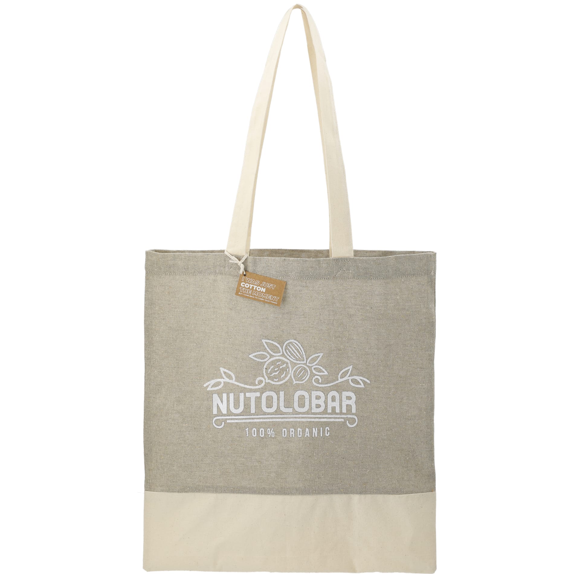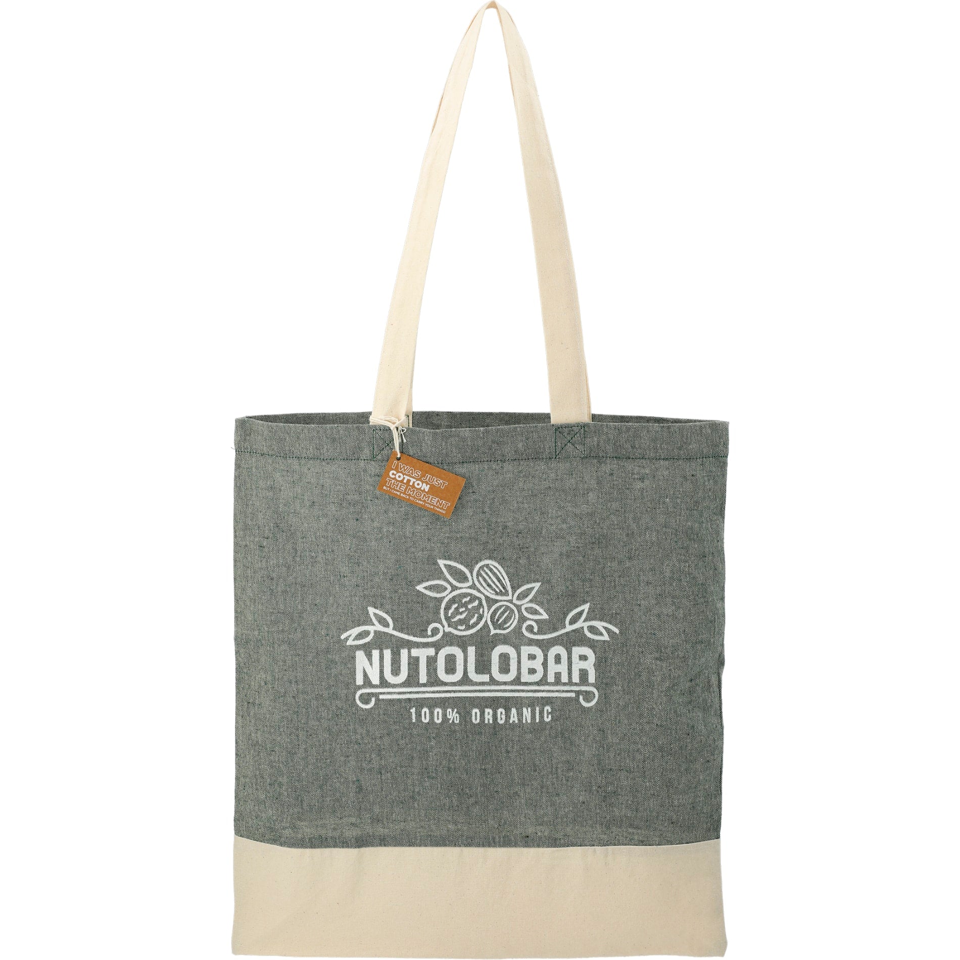 The Split Recycled 5oz Cotton Twill Convention Tote is manufactured from cotton and recycled pre-consumer recycled cotton generated by factories during the fabric cutting process. It is approximately 70%-80% recycled cotton and 20-30% RPET. This tote features a trendy color-block design with an open main compartment. Through a partnership with 1% For The Planet one percent of sales of this and all EcoSmart products will be donated to nonprofits dedicated to protecting the planet.