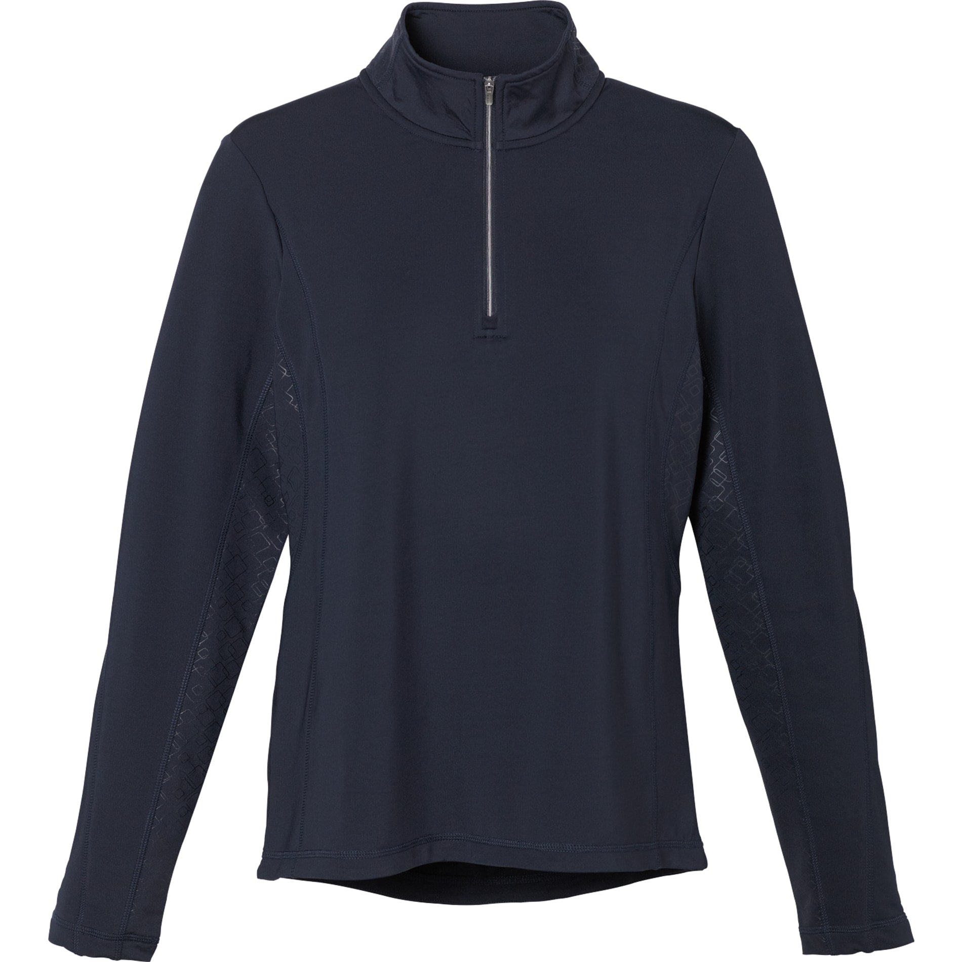 The Caltech long-sleeve top has a quarter zip with contrast teeth allowing you to adjust your body temperature. The interior zipper flap protects you from the chill of the zipper against your skin. Laser not available on Navy and Black.