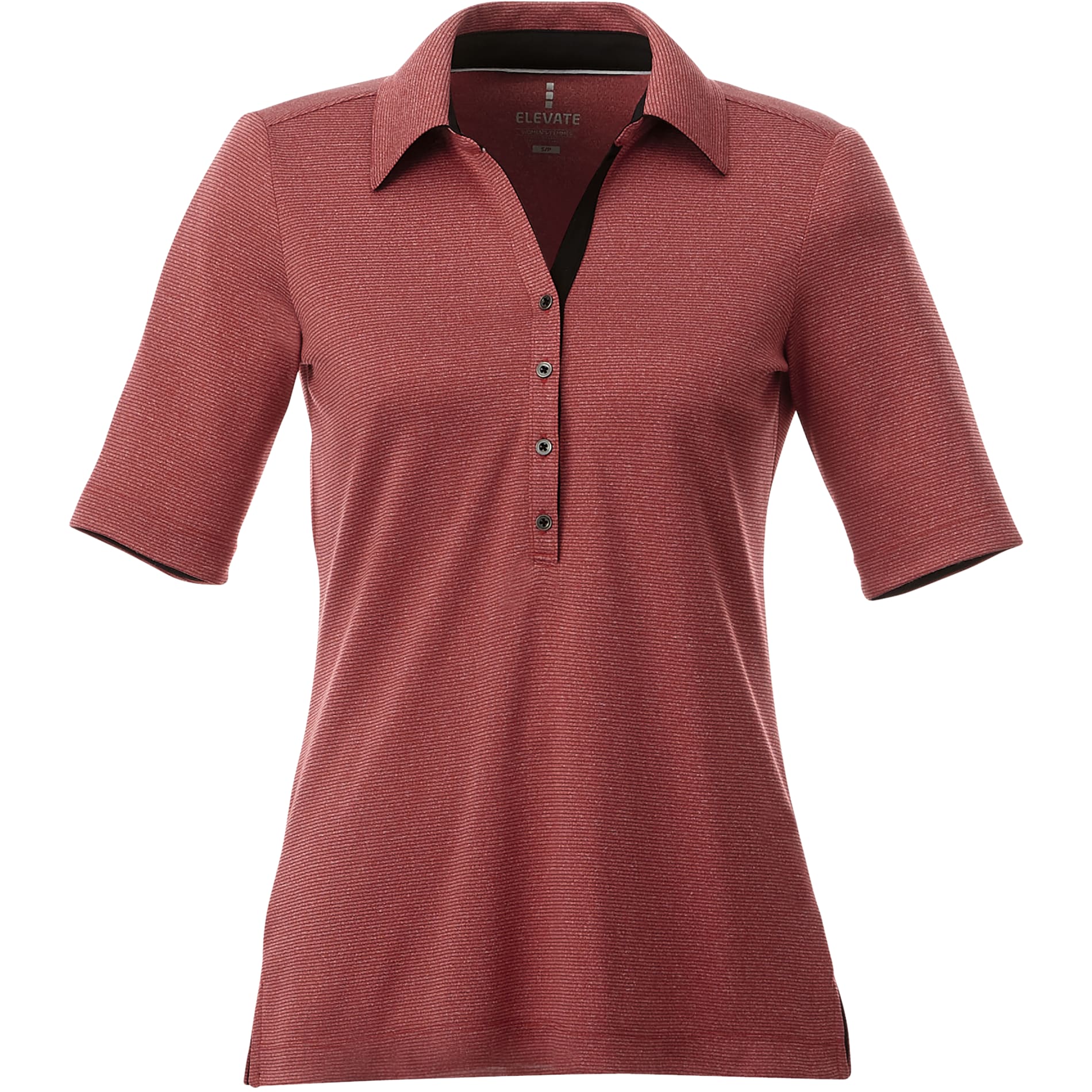 The Womens Skara Short Sleeve Polo features a modern fit and on-trend textured linearfabric built with inherent cooling properties. This high-tech polo is also durable with a snag-resistant finish and provides UV protection (UPF 40+). The womens version has shaped seams and tapered waist for a flattering fit.