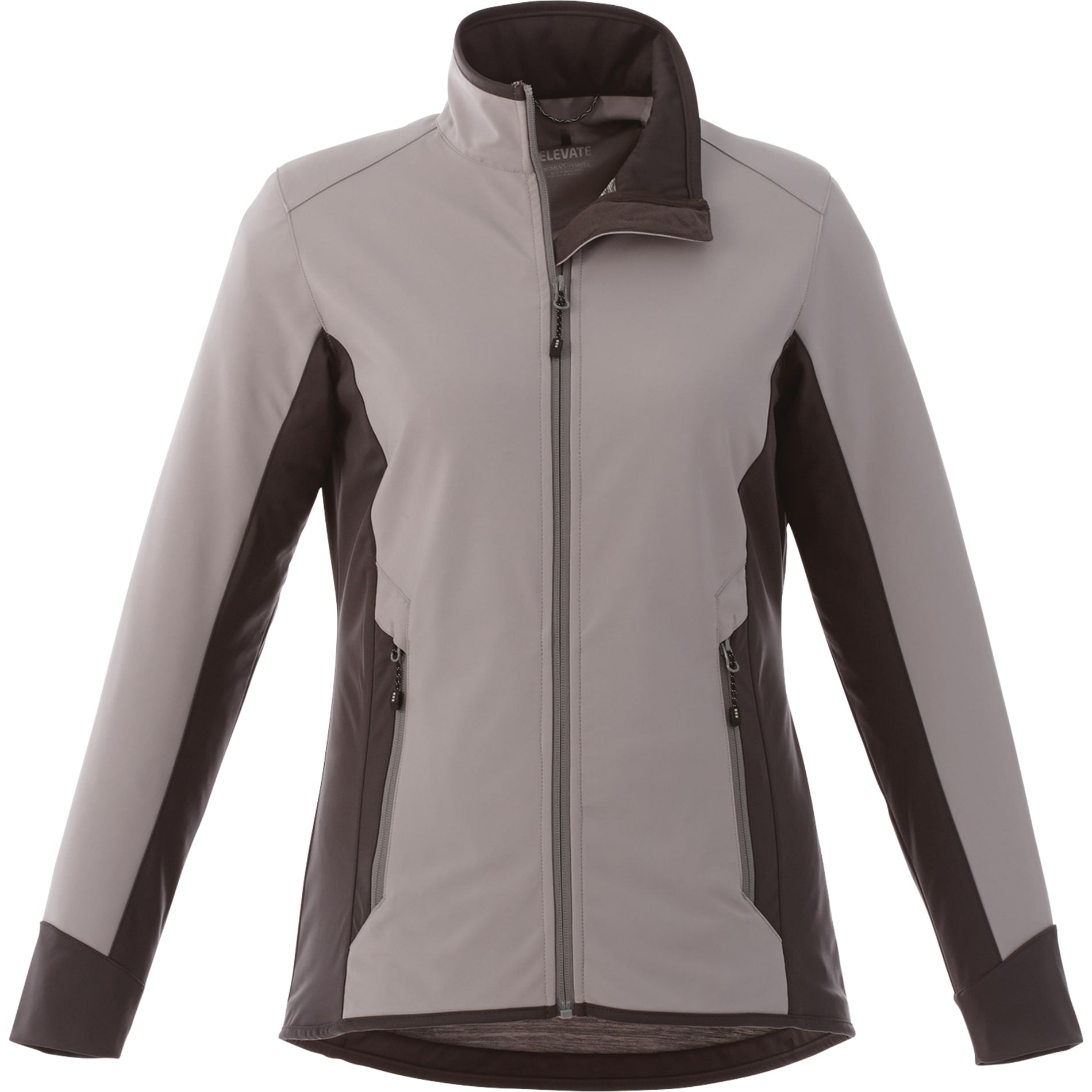 The Sopris Softshell Jacket features three-layer construction for lightweight warmth and comfort. Designed with a breathable, waterproof membrane, its got stylish details inside and out, from grey color blocking and a color-pop zipper to a heathered knit interior. And with an interior pocket and media exit port, you can run a pair of earbuds from inside the jacket.