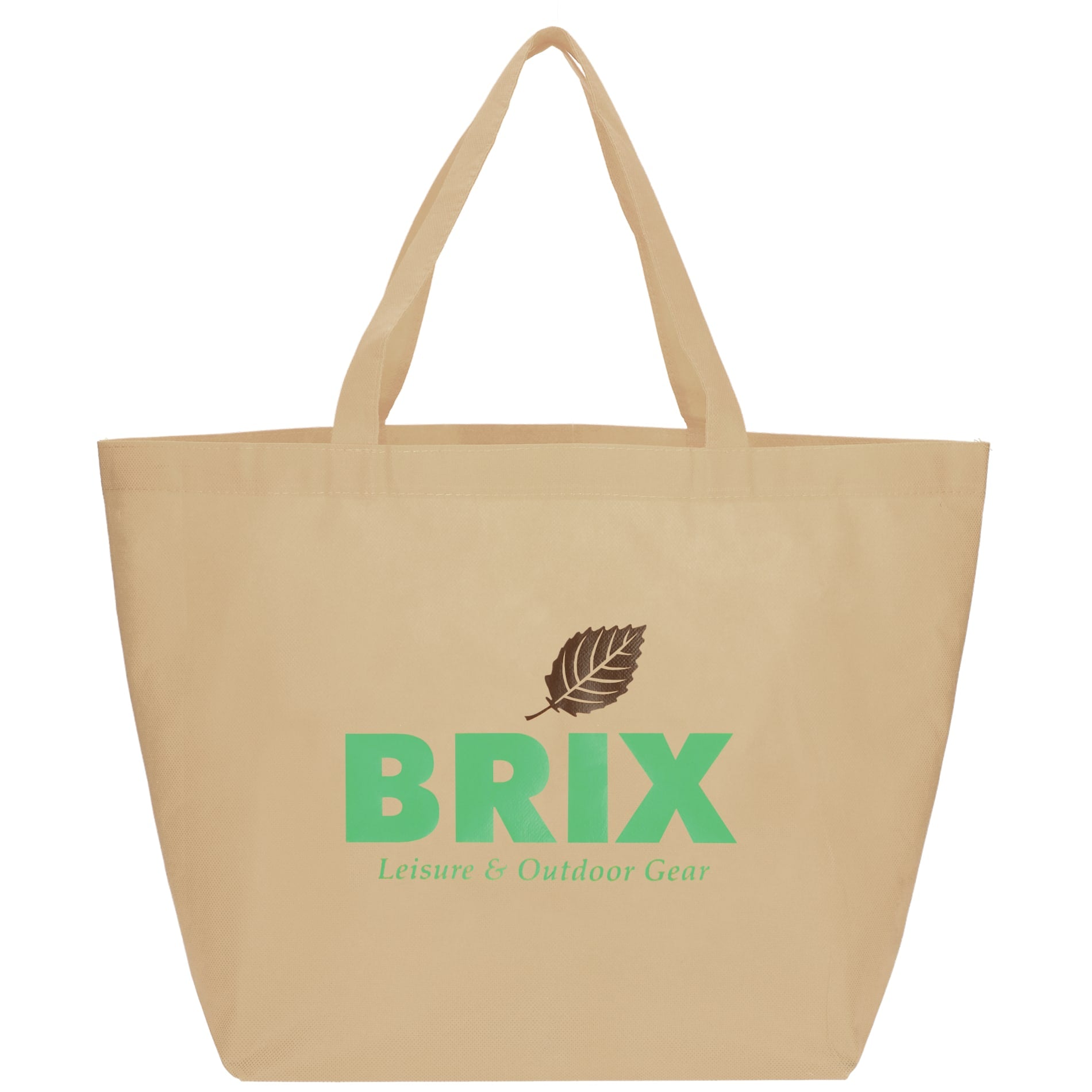The YaYa Budget Non-Woven Shopper Tote has a large open main compartment with double 20 inch reinforced handles. Its completely reusable and a great alternative to plastic bags. Gusset & Handle Decorating does not qualify for one day turn. Bag is flared at the top and 19.5in wide when laid flat or when not fully stuffed. Bottom is 12in in width or when bag is fully stuffed. Polypropylene is recyclable with #5 plastics please check with your local municipalities for specific rules and regulations.